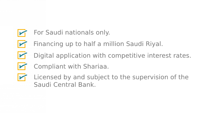 - Financing amount: Minimum 3,000 SAR, Maximum 80,000 SAR.